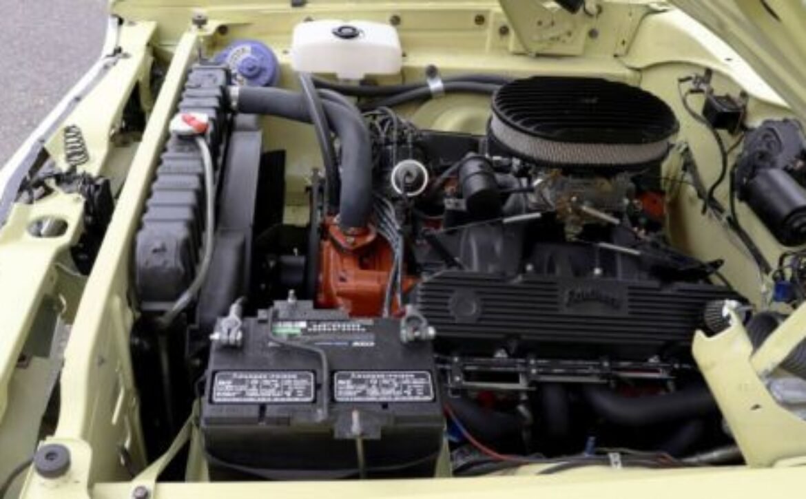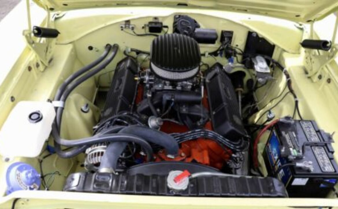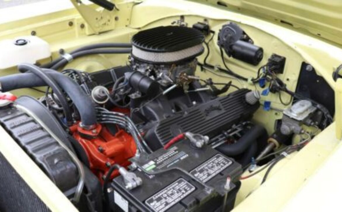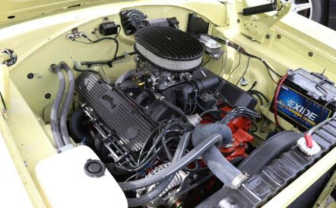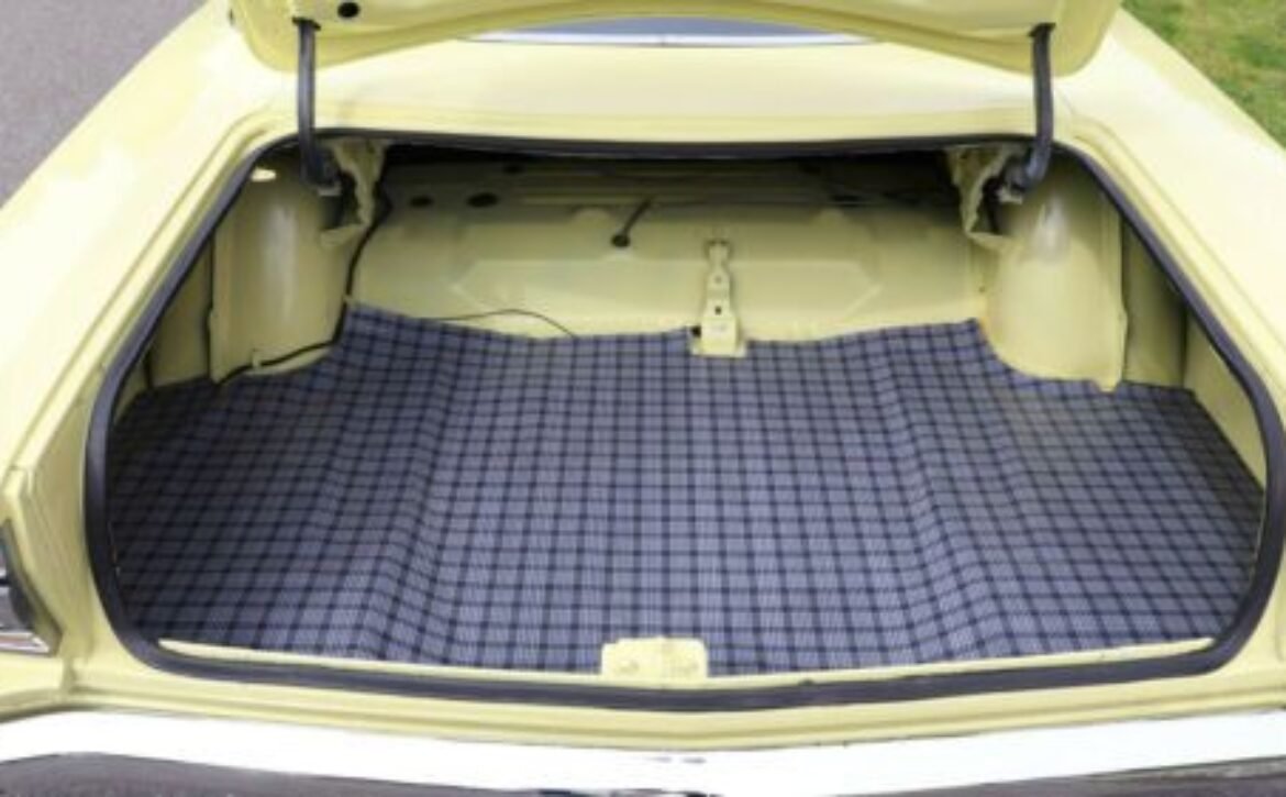 The car has undergone a complete nut and bolt restoration, ensuring it is in pristine condition. The restoration included rotisserie and media blasting down to bare metal, followed by a fresh coat of SS1 yellow paint complemented by a new, correct vinyl top. The interior has been meticulously refurbished with new seat covers, door panels, carpet, and headliner. A detailed trunk with a new mat rounds out the extensive restoration efforts.