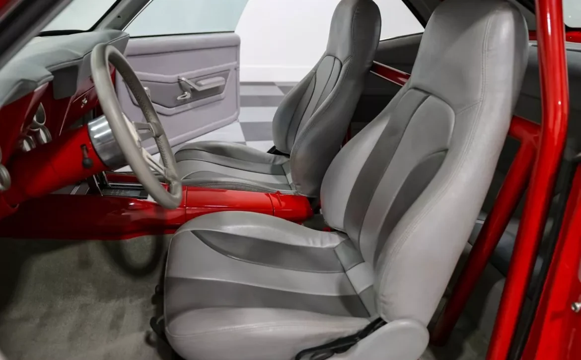 Performance isn’t just about the engine—this Camaro is built for handling, too. With tubular upper and lower control arms, front coilovers, and Wilwood disc brakes on all four corners, this car offers exceptional handling and stopping power. The custom front subframe and subframe connectors add rigidity, while manual rack and pinion steering and polished Colorado Custom wheels ensure responsive, precise handling. A fiberglass cowl hood, chrome hood hinges, billet headlight rings, rear spoiler, and roll bar all contribute to its track-ready aesthetic.