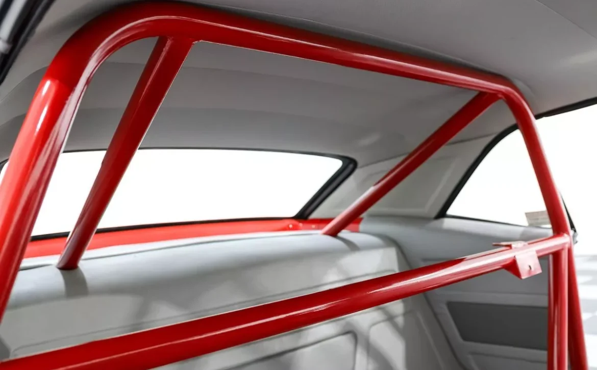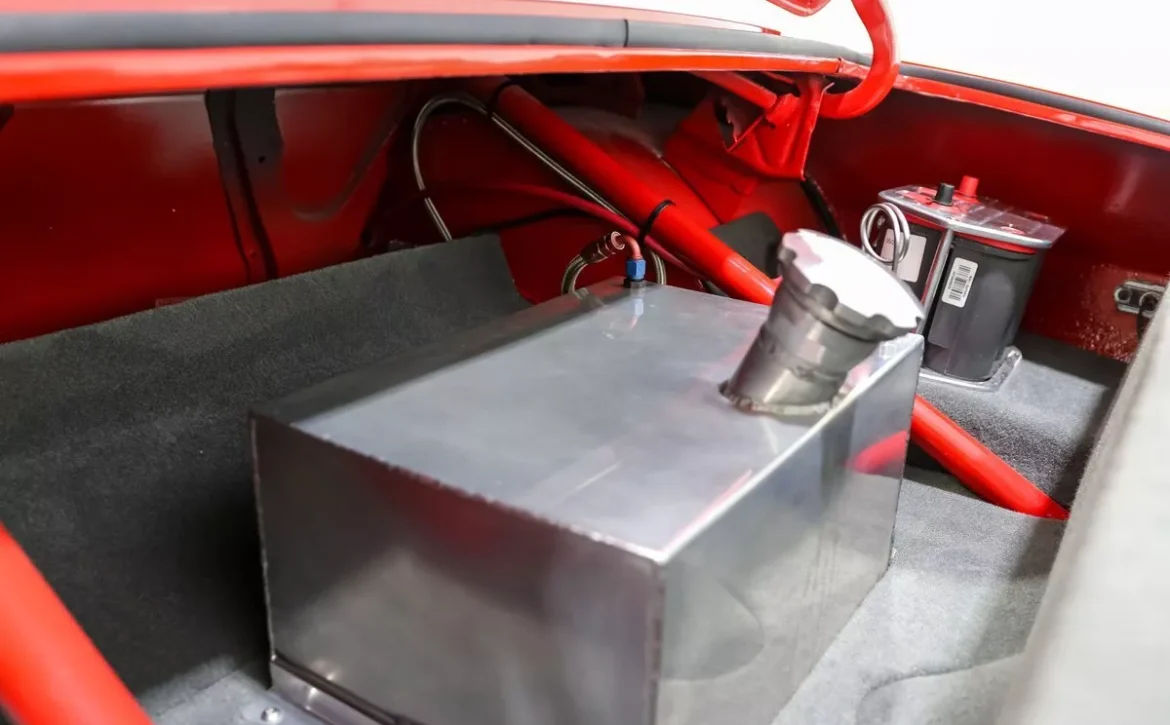 Inside, the custom Gray interior offers both style and function. Featuring bucket seats with a center console, a leather-wrapped billet steering wheel, and Autometer gauges, the cabin is designed for the enthusiast driver. Billet aluminum pedal covers, custom door panels, and billet inside door handles elevate the interior’s luxury. The rear seat delete and in-trunk fuel cell underscore its racing pedigree, while the roll bar and horseshoe shifter enhance both performance and safety.