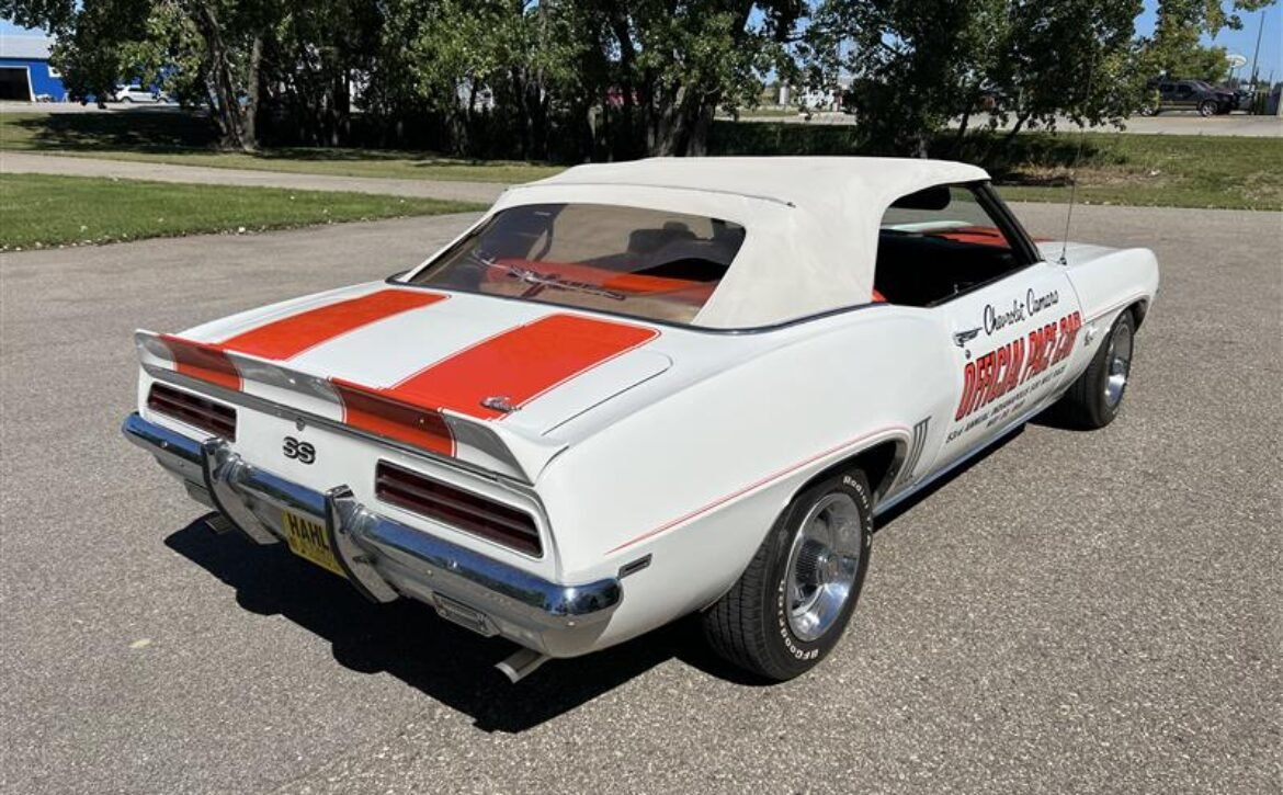 Step into the world of iconic American muscle with this 1969 Chevrolet Camaro, a testament to the timeless design and engineering prowess of Chevrolet. This particular model is an SS Pace Car edition, renowned for its role in the Chevy Power Tour held in 1997. A stunning original, it boasts a robust 350 engine enhanced with fuel injection, providing an exhilarating driving experience.