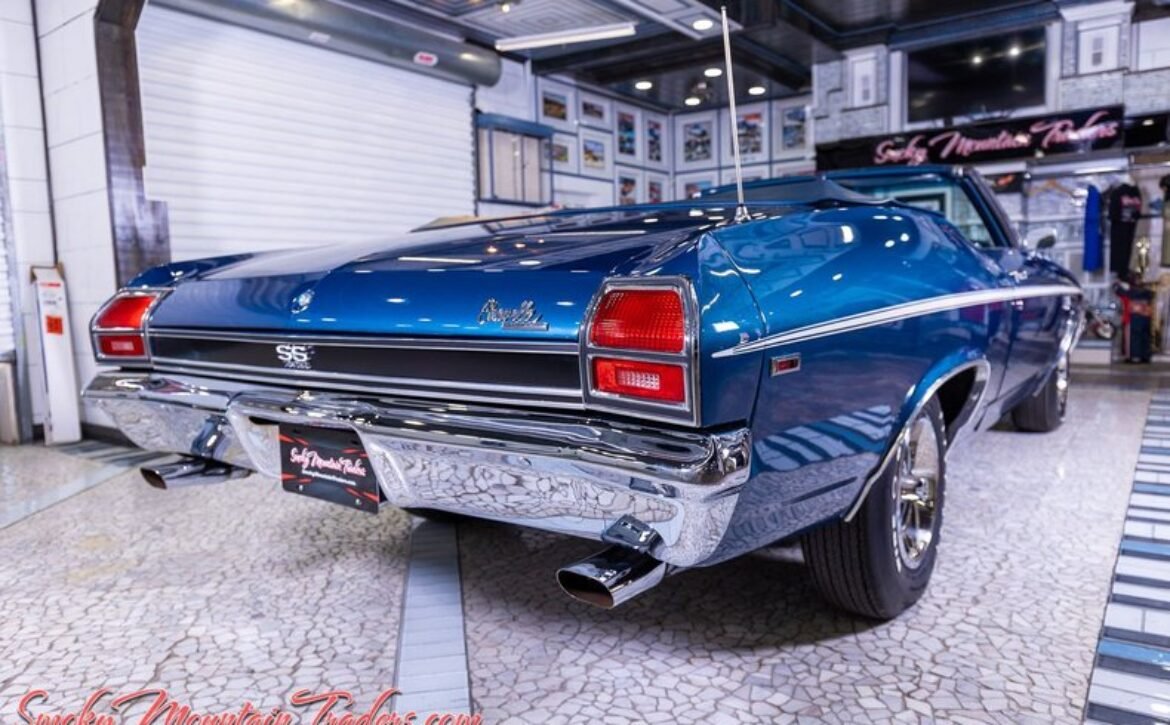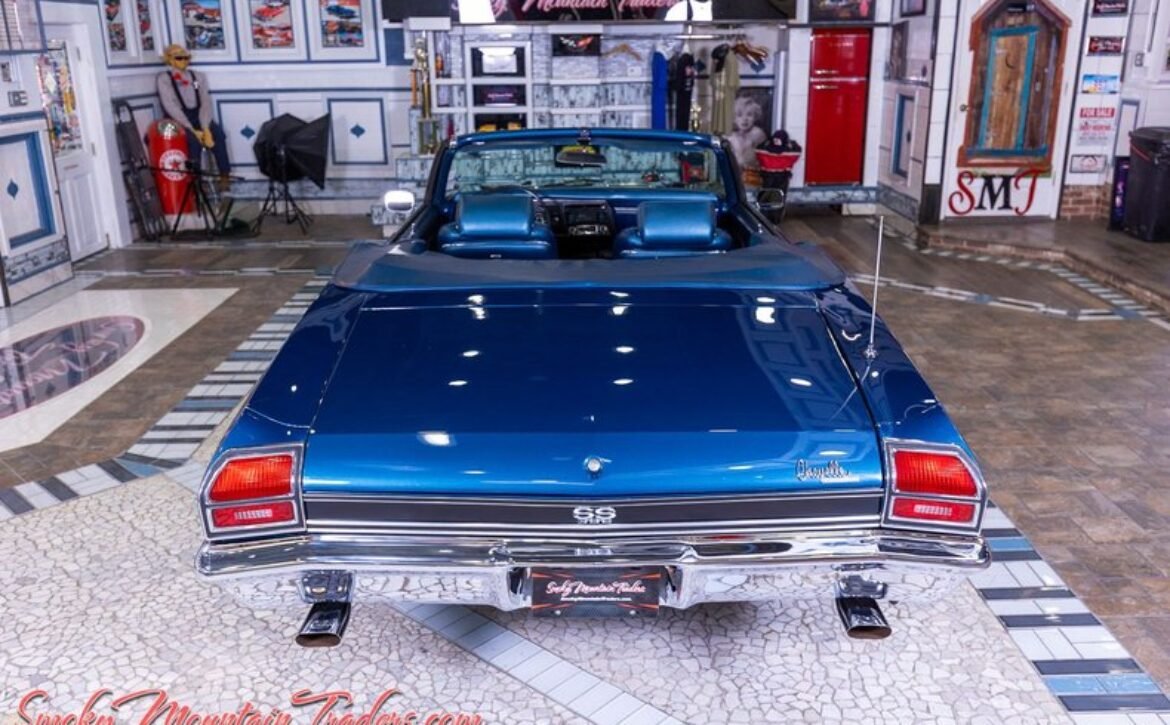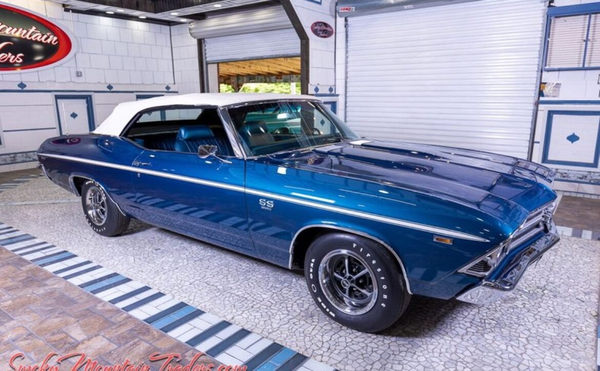 Dusk BlueWe are thrilled to present a remarkable 1969 Chevrolet Chevelle SS Convertible. This classic beauty has undergone a comprehensive frame-off restoration, resulting in a stunning piece of automotive history. The Chevelle is finished in an elegant Dusk Blue Paint Scheme with contrasting white stripes, offering a sophisticated yet sporty look. Perfect for those sunny days, the brand-new white convertible top complements its overall aesthetics beautifully.