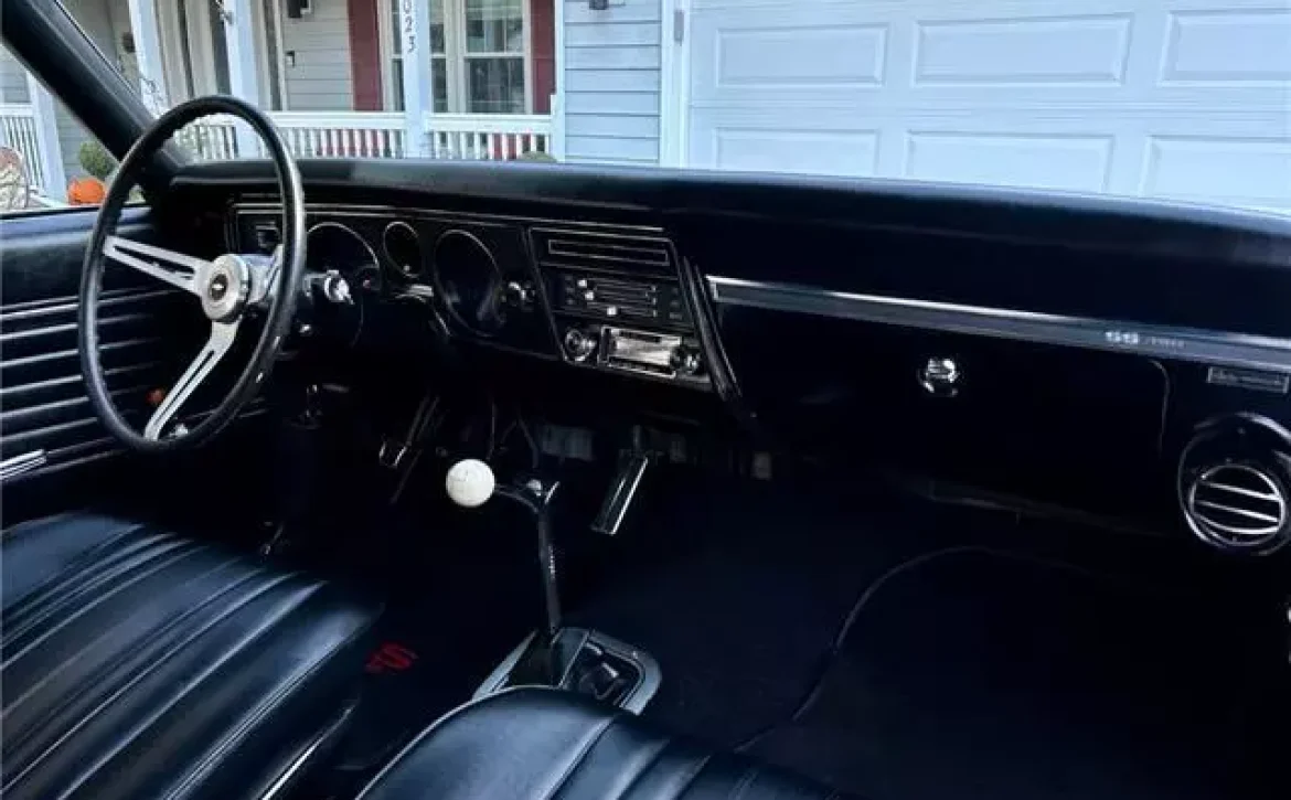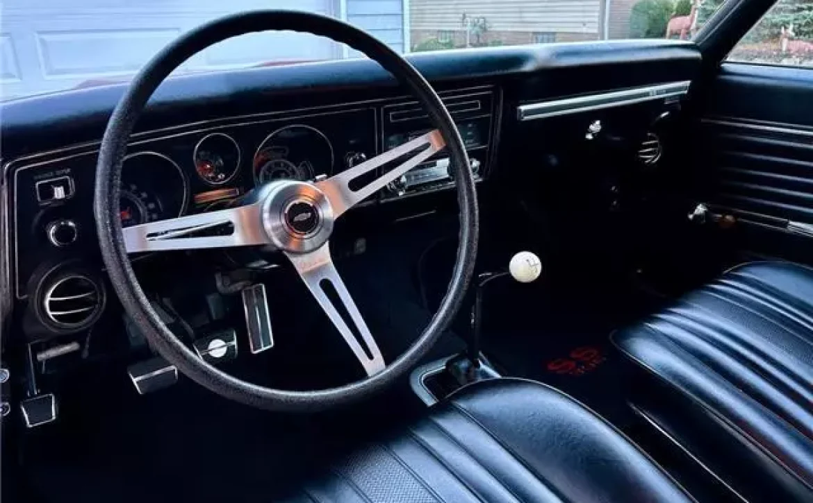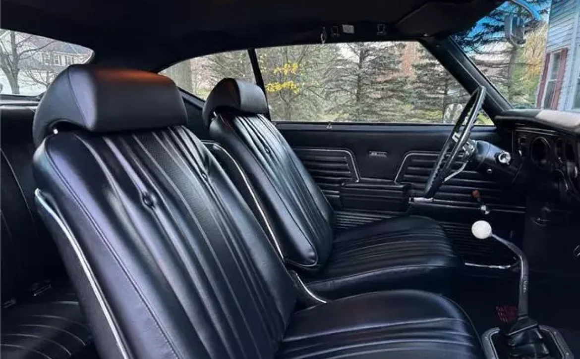 The car also features the F-41 suspension with boxed rear trailing arms and a rear sway bar, which ensures tight handling. The dual exhaust system, with correct 1969 exhaust tips, produces a throaty rumble that perfectly complements the muscle car’s raw power.