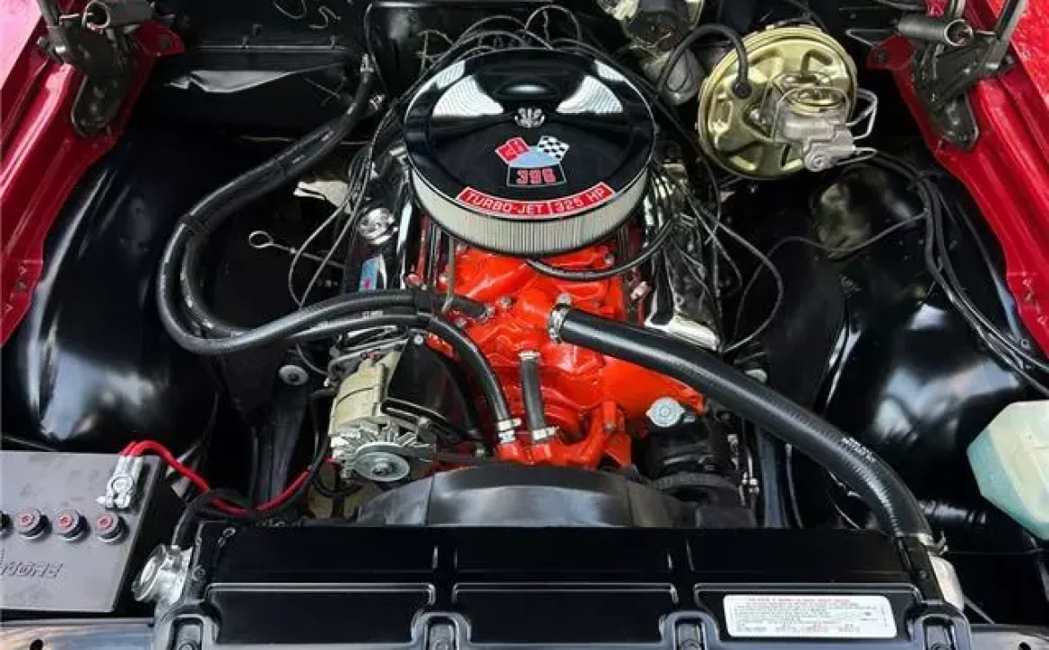 The 396 Big Block engine (325 HP) has been rebuilt to factory specifications and presents a factory-correct look in the engine bay. The motor, bearing stamping “TO326JA” (March 26th L35 396), is paired with the matching numbers M21 4-speed manual transmission and the original 12-bolt 3:55 posi rear end with code “KF0326B” (March 26th – 3.55 gears).