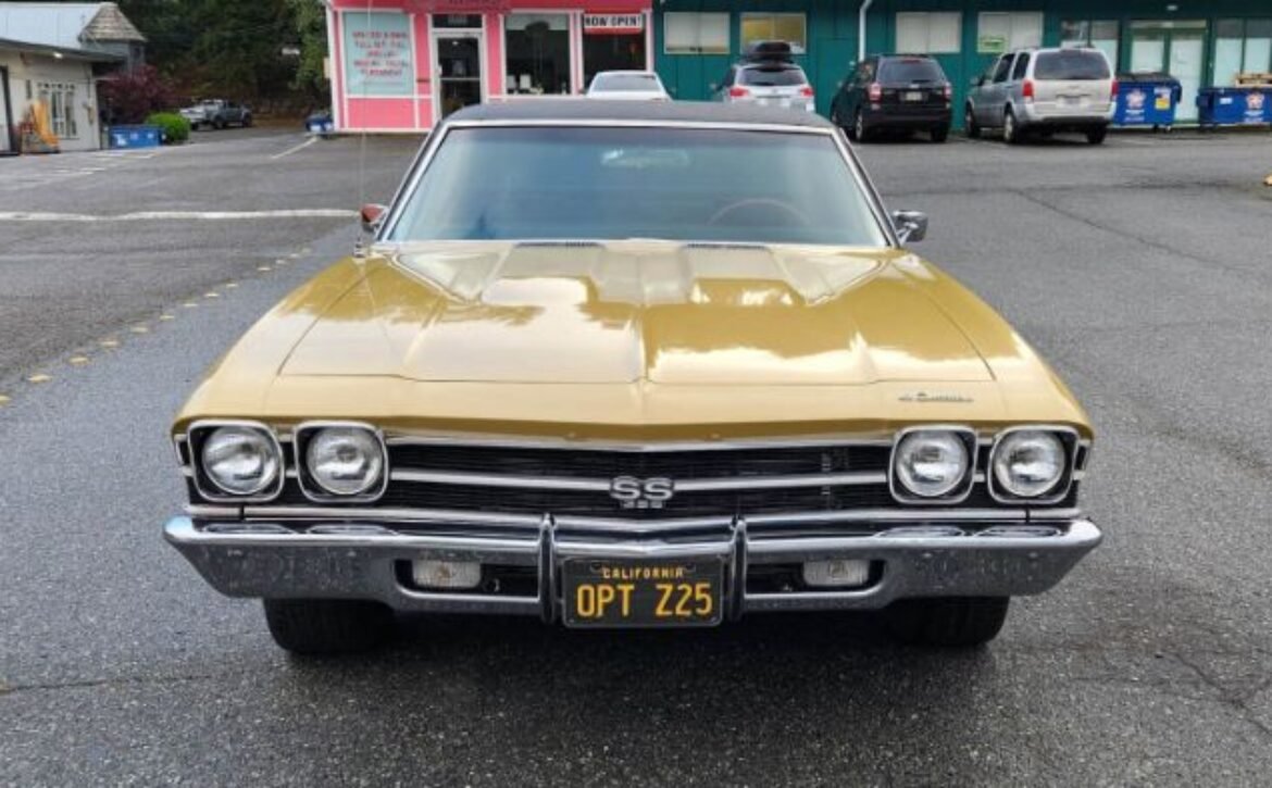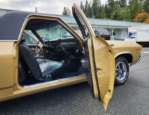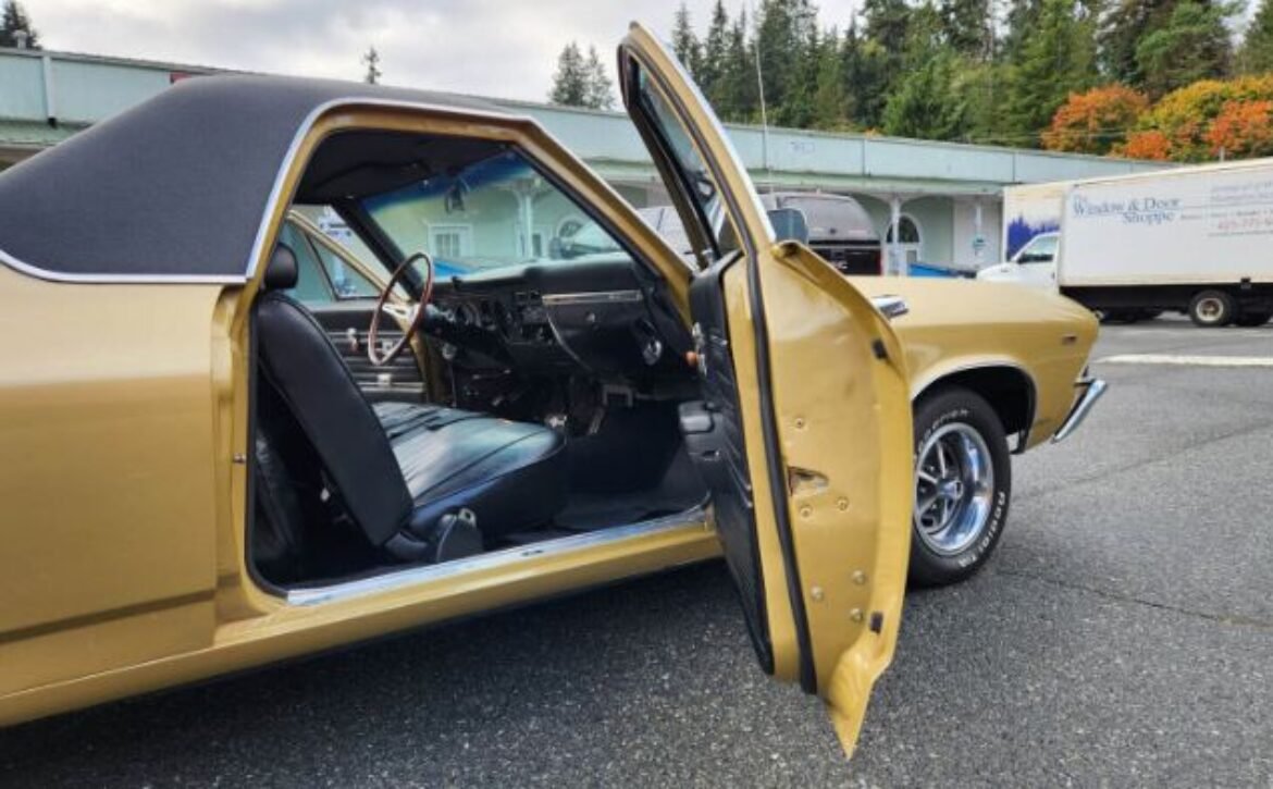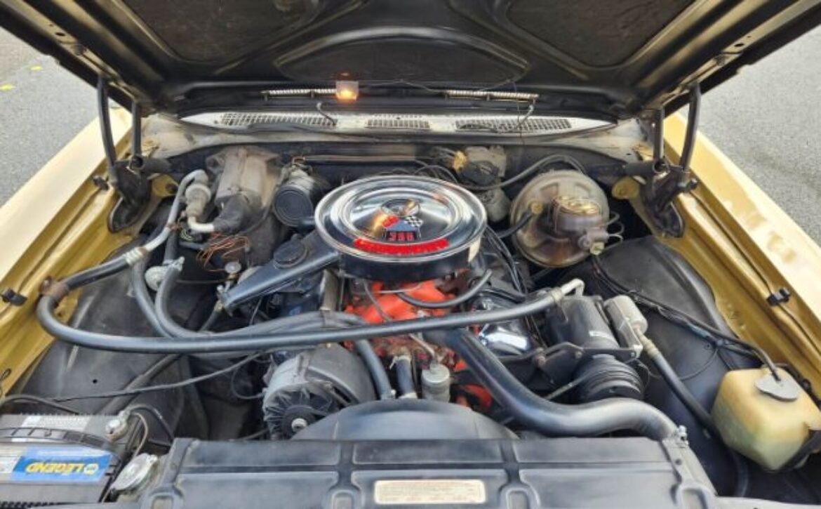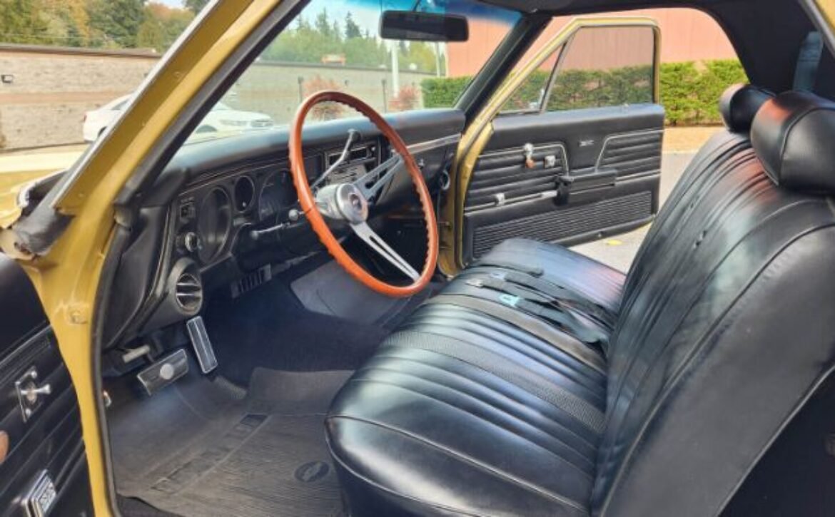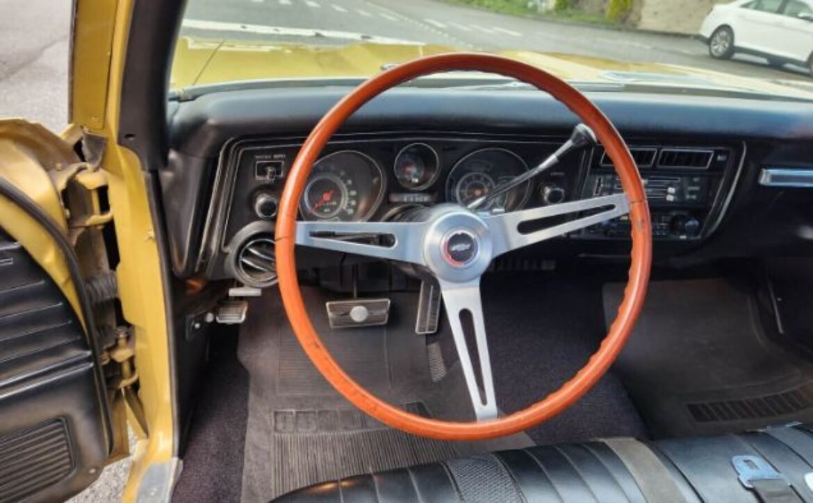 Olympic GoldThis rare find is powered by a robust 396 325 h.p. engine with an automatic transmission (Turbo 400), ensuring it delivers both power and performance. The car is equipped with a column 12-bolt posi, offering incredible stability and control on the road.