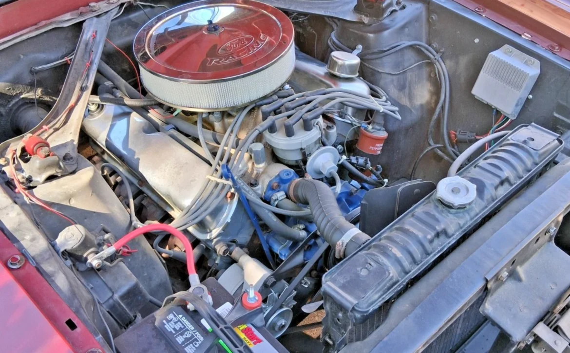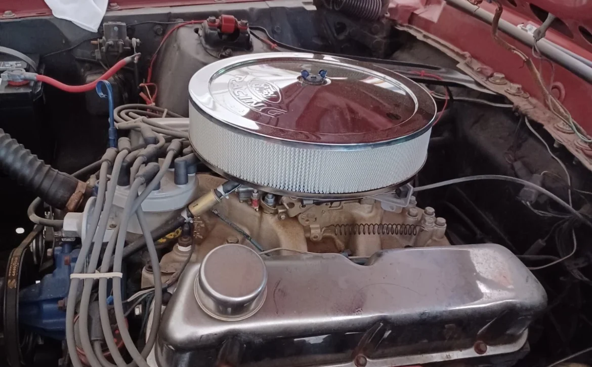 Original 2-barrel intake replaced with Edelbrock Performer 351W 4-barrel intake