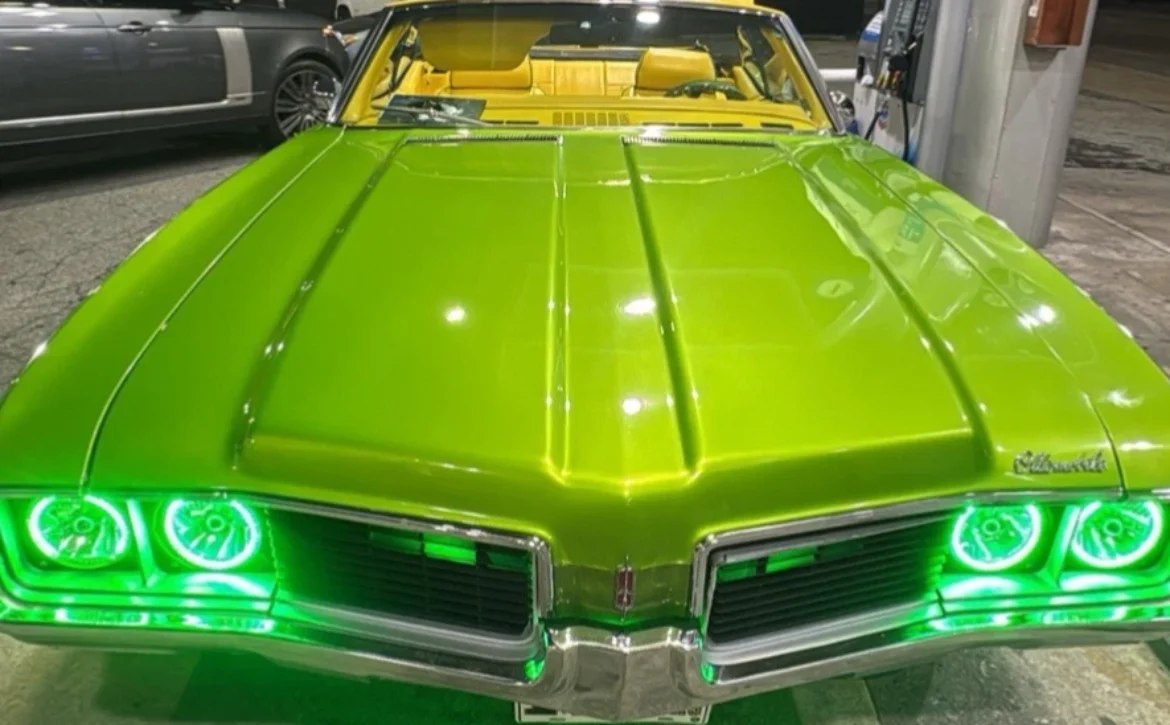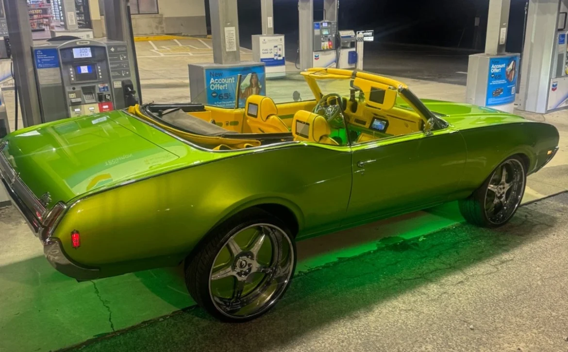 Green1969 Oldsmobile Cutlass Chrome Convertible – One Owner, Only 5,000 Miles