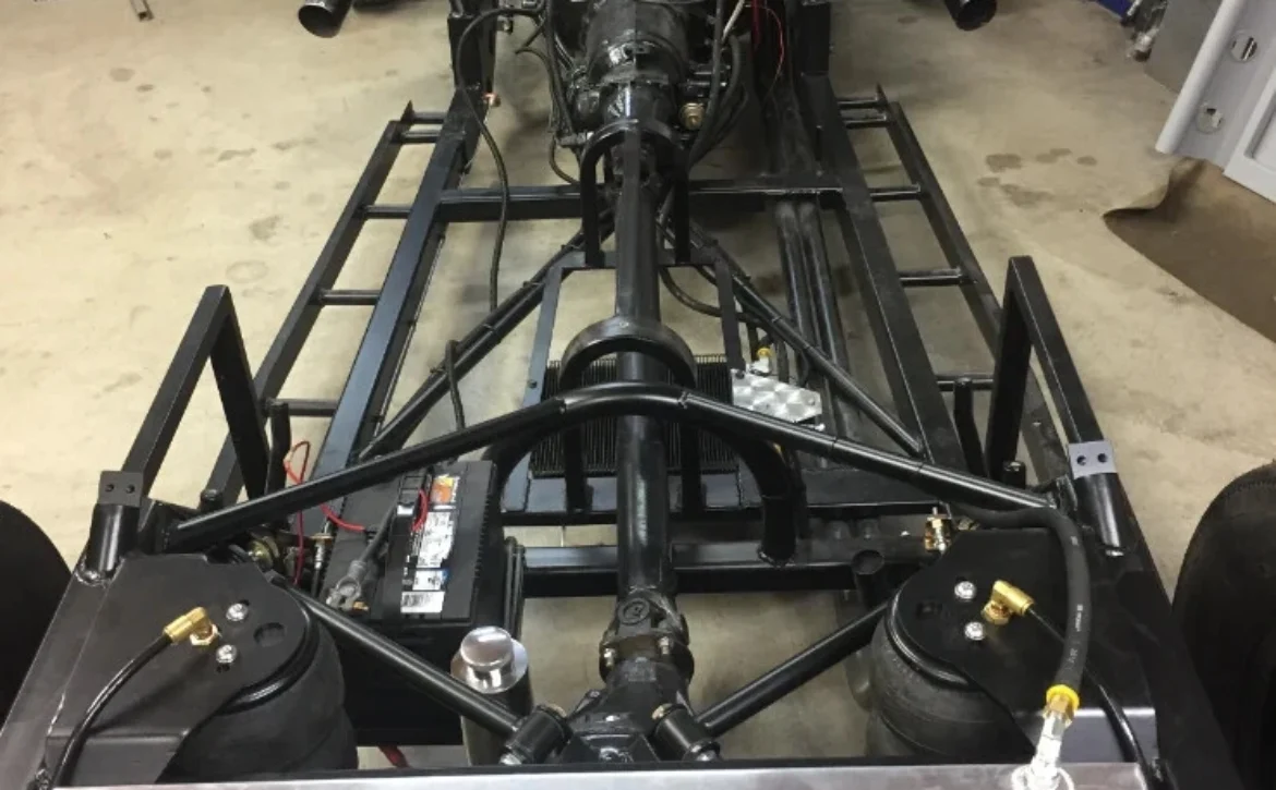 Four-link rear suspension with airbags (6″ ride height adjustability)