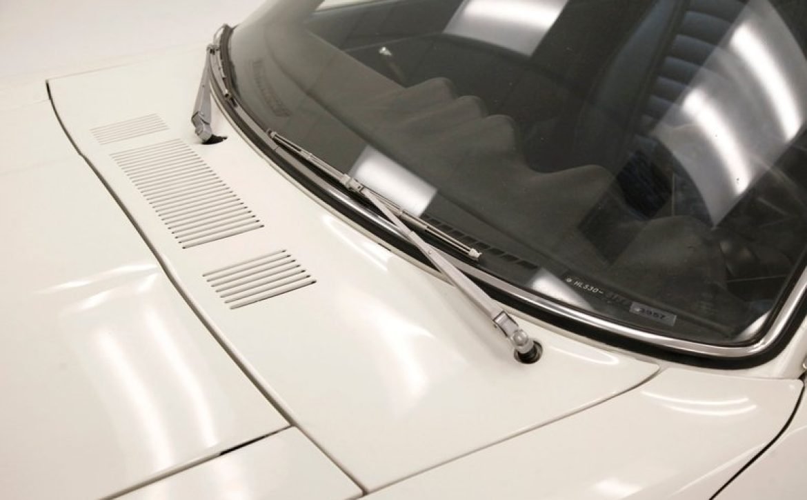 The cabin is a harmonious blend of original and refreshed elements. Cobalt Blue vinyl door panels complement black accents and chrome finishes. Recently reupholstered high-back bucket seats provide comfort and support against a backdrop of black carpeting. The dashboard, with its circular motif, hosts a range of gauges and controls, with a factory-installed AM radio and an original sporty 3-spoke steering wheel, adding to the car’s charisma.