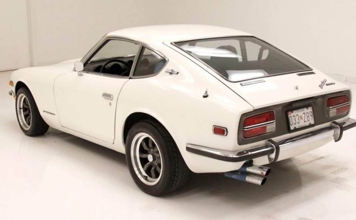 For enthusiasts of classic and iconic sports cars, this 1970 Datsun 240Z embodies the essence of a timeless design. Finished in an elegant white, this early Z-car retains its distinctive lines, punctuated by tastefully small chrome bumpers and the classic hatchback styling. Its original drivetrain, the robust 2.4L inline 6-cylinder engine, provides an authentic driving experience, delivering 151 horsepower with the assistance of dual Hitachi carburetors. Paired with a recently installed 4-speed manual transmission and new clutch, it’s primed for spirited driving.