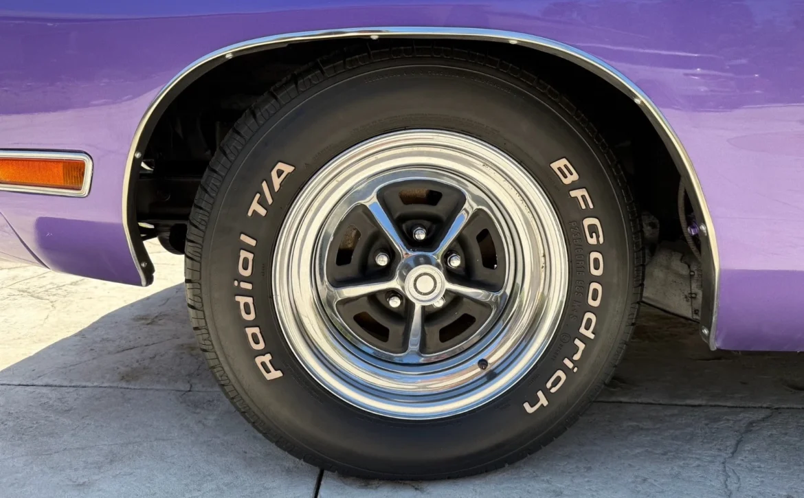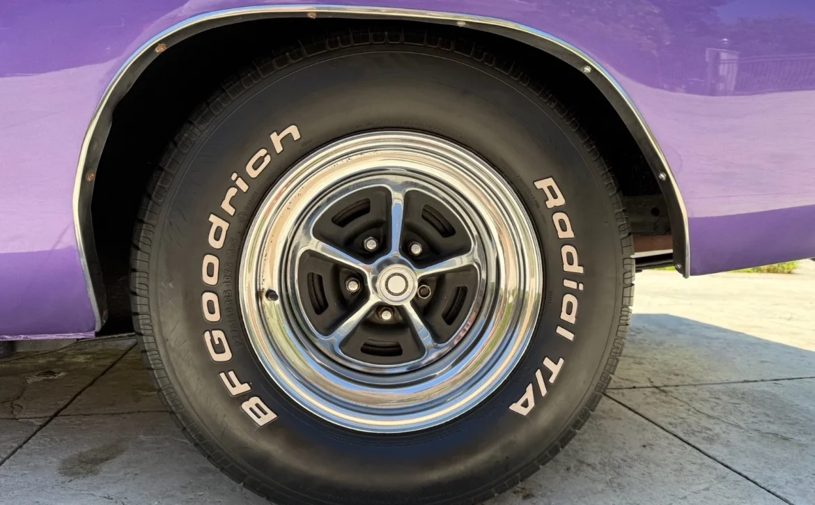 15″ Magnum 500-style wheels with BFGoodrich Radial T/A white-letter tires