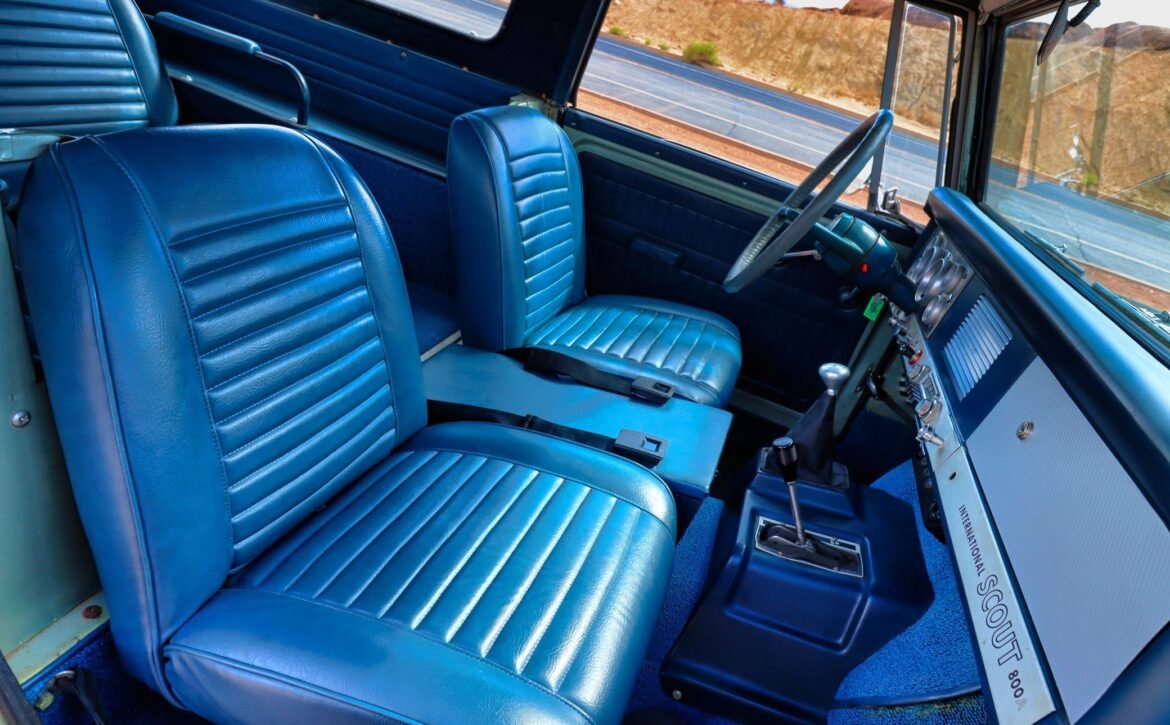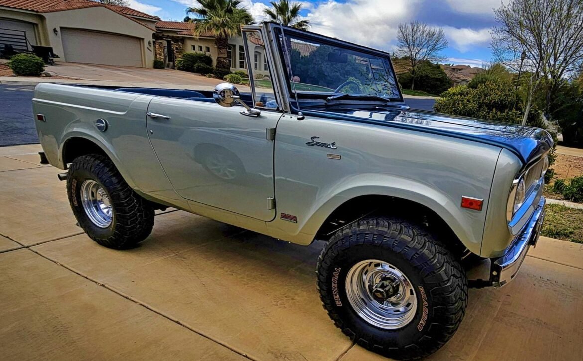 According to the seller, this Scout is a recently restored example and is powered by a BluePrint 383-cubic-inch V8 crate engine, replacing the factory unit. A dyno sheet shows it produces approximately 437 horsepower and 474 lb-ft of torque.