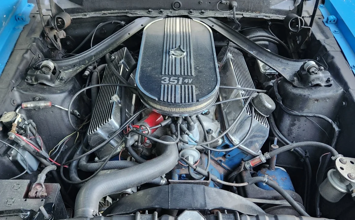 351 Cleveland V8 with performance 4-barrel carb and intake