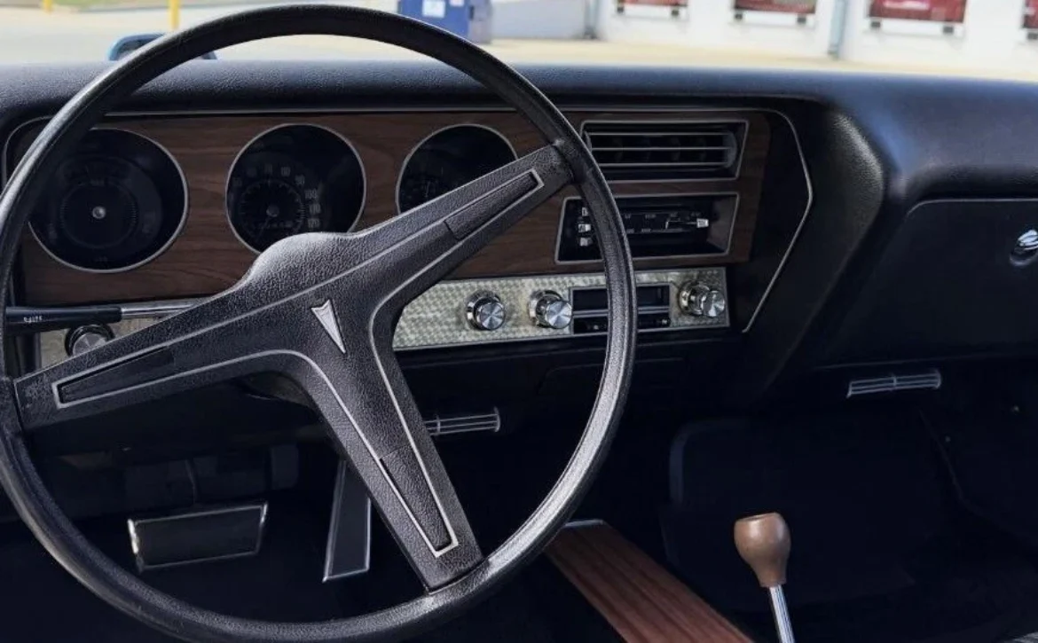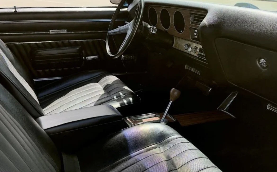 This stunning Pontiac GTO turns heads with its iconic Atoll Blue exterior, a color celebrated for its bold, timeless appeal. The black interior offers a clean, classic contrast, highlighting the GTO’s unmistakable muscle car styling.