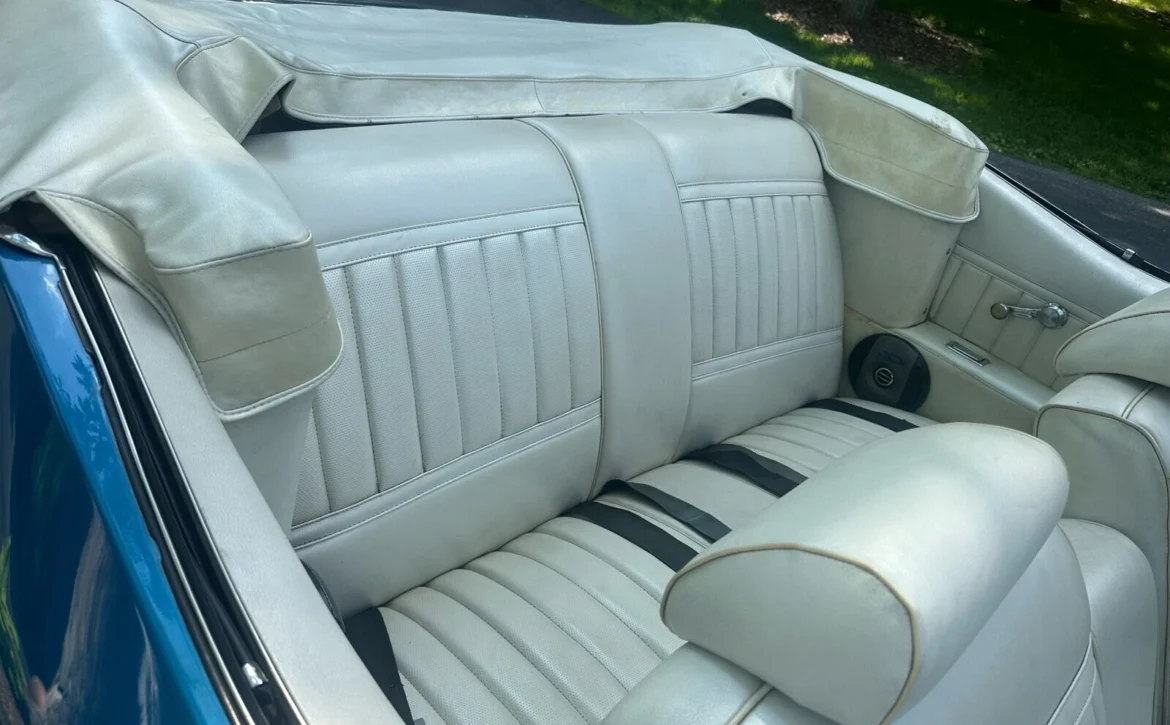 The convertible top functions great—I replaced the top pumps recently. The exterior is an 8 out of 10 overall, with no damage and only minimal signs of wear (occasional small chips). It appears to have been repainted, and the previous owner’s family confirmed the repaint was done during their father’s ownership.