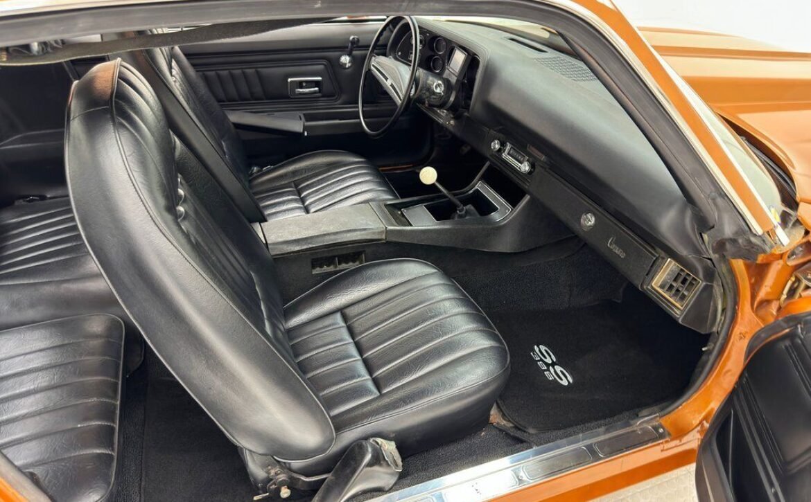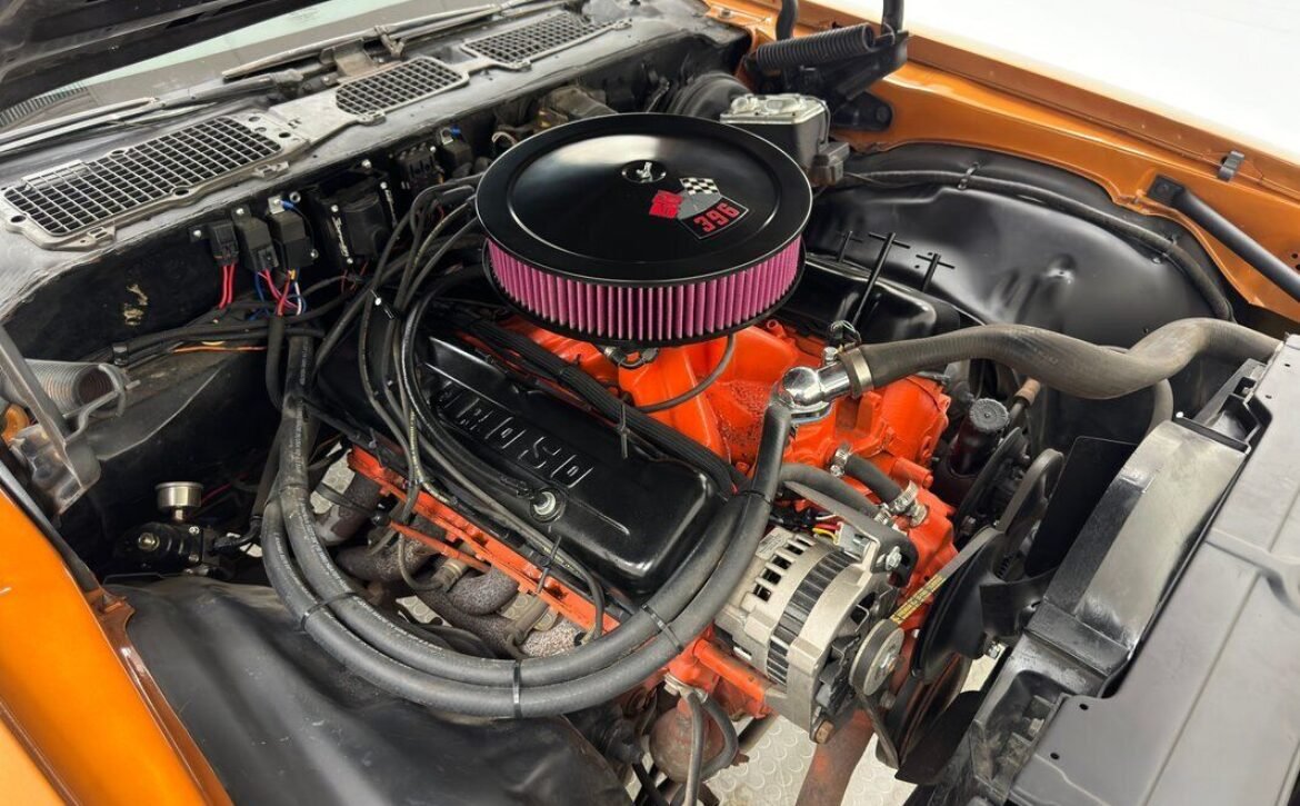 Under the hood, you’ll find a clean and powerful 402ci motor, date-coded to 1971, and topped with a Holley Sniper EFI system that ensures smooth and reliable fuel delivery. The engine is paired with a 1970 vintage Muncie M22 4-speed manual transmission, sending power to the rear 10-bolt axle with 2.56 gears. Power brakes with disc brakes in the front and drums in the rear provide solid stopping power, while the dual exhaust system with Flowmaster mufflers ensures this muscle car sounds as good as it performs.