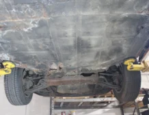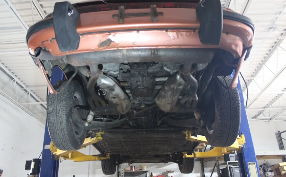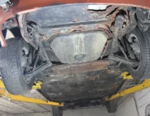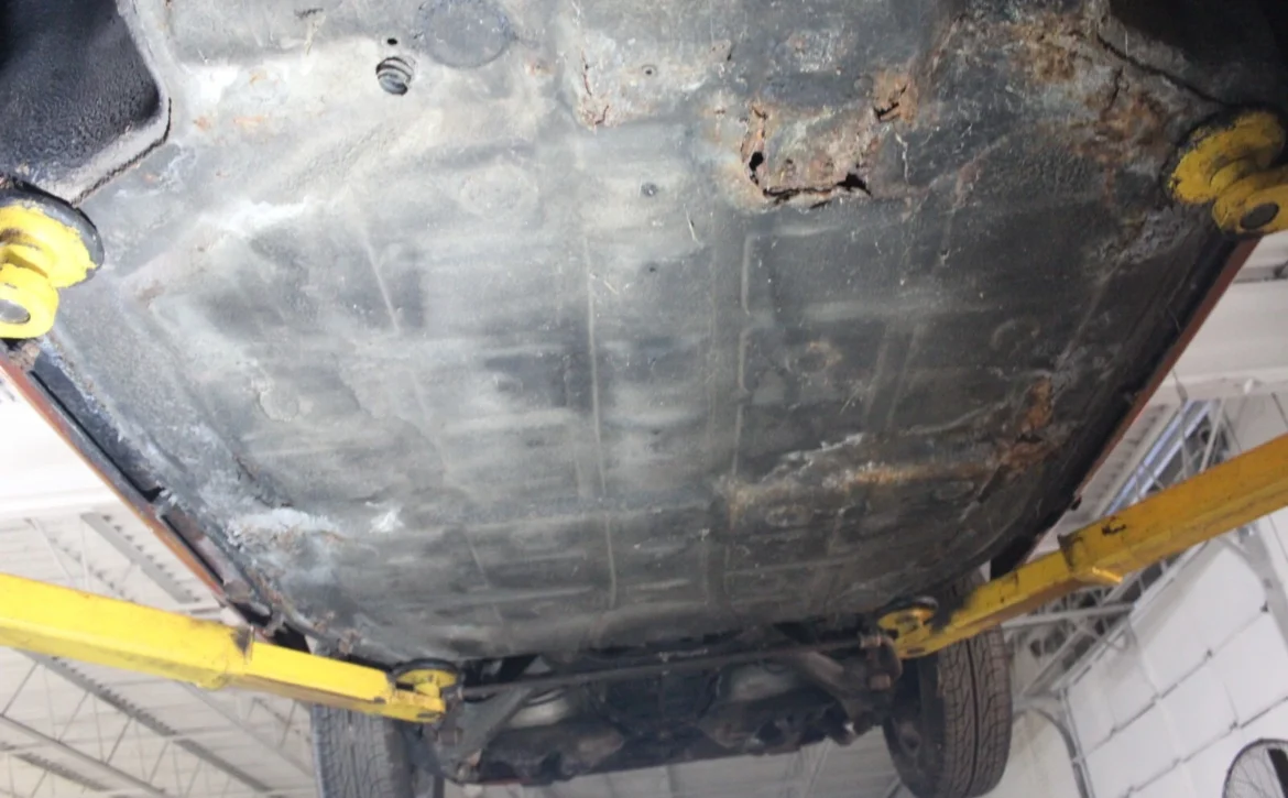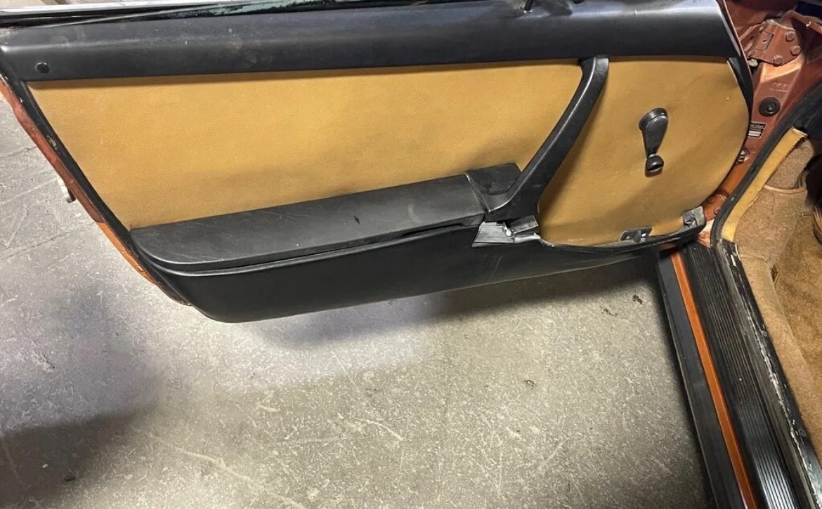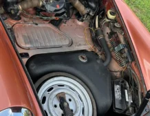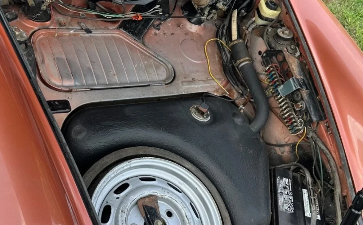 Exterior: Repainted in original Salmon Metallic; visible rust on the floor pans, front trunk area, and bottoms of the doors (see photos).